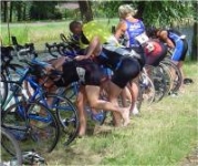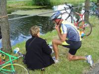 (in de regen) de mini triathlon van start. Voor de (beladen) 13de keer