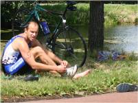 van de fiets naar het lopen. Een kwajongesstreek of een manier om