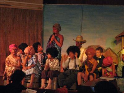 ![]() Musical "De negerhut van oom Tom" door kinderkoor De zangvogeltjes o.l.v. Lydia van Toor-Verstoep. Met drie uitvoeringen in het dorpshuis. Tussen de voorstellingen door lekker eten? In het dorpshuis was het vanaf 17:00 uur heerlijk tafelen in het restaurant/ happitaria verzorgd door de jeugdvereniging. De opbrengst gaat geheel naar het goede doel. Aangezien er ook DVD opnames werden gemaakt, mocht er niet met flitser gefotografeerd worden. |
