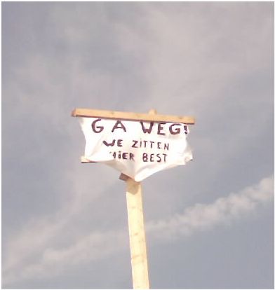 En belofte maakt schuld. Maandag zei ik met mijn grote mond dat als er een groepje boven de bomen uit zou komen met hun toren, ik ook naar boven zou klimmen... en ze waren vandaag dus boven de bomen uit... ik mocht er gelukkig met mijn 120 kilo alleen staan... maar wel lekker windje daarboven.'s Middags ook weer knutselen in de (nieuwe) tent. De T-shirts en vlaggen worden afgemaakt.