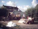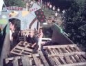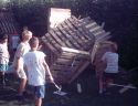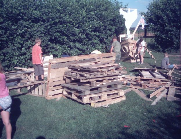 En er moest vandaag opgeruimd worden. Vanaf negen uur mocht de hamer weer ter hand genomen worden, dit keer om het bouwwerk uit elkaar te timmeren. soms was de hut zo stevig dat er zelfs een moker nodig was om deze uit elkaar te slaan. Bij weer andere hutten werd de zaak om getrokken zodat je gelijkvloers alles uit elkaar kon slaan. Maar als je (voor buitenstaanders) gamele toren omvalt en hij dan nog bijna geheel intakt is... dan is hij toch wel stevig...
