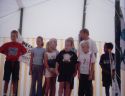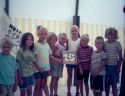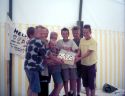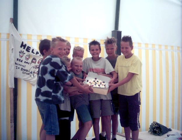 In de derde catagorie was het met slechts 4 deelnemer erg moeilijk voor de jury om de juiste verdeling te vinden. Er is bij deze catagorie heel goed gekeken naar het playbacken, de presentatie en de uiterlijke verzorging. Dat gaf uiteindelijk de volgende uitslag. Op de eerste plaats de "dril instructor", op de tweede plaats, met slechts een halve punt verschil, de Golden Earing, met "long blond animal" en als derde de trappelzakboogie. (drie volwassen kerels met luiers om op het podium.) vierde werd Rita Corita met "koffie, koffie, lekker bakkie koffie". Alle eerste plaats winnaars kregen naast de eerste plaats beker ook de wisselbeker die ze een heel jaar lang op hun schoorsteen mogen zetten. Behalve dan de winnaars van de derde catagorie. Deze hebben de talentenjacht nu voor de derde achtereenvolgende keer gewonnen, en zij mogen de wisselbeker nu houden. Alle deelnemers kregen ook een herinneringsmedaille.Van deze talenten jacht heb ik zelf geen foto's, maar als andere deze wel hebben en willen delen, breng ze AUB even langs in een envelope in de brievenbus of e-mail. Niet digitale foto's zijn dus ook welkom hoor. Of alleen het APS rolletje waar de foto's op staan is ook goed. Alles krijg je (normaal gesproken na één dag) uiteraard retour (als je naam en adres erbij staat...)