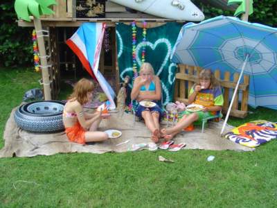 Je hebt kunnen uitslapen! Vandaag een belangrijke dag. Je kunt de laatste wijzigingen of versieringen aanbrengen want vandaag komt de jury de hutten beoordelen. Verkleed komen is bijna "verplicht". Je kunt je laten schminken in de tent en er zijn diverse spelletjes op het veld.