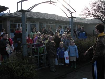 , ondanks alle weersverwachtingen. Al lopend naar het schoolplein, werd