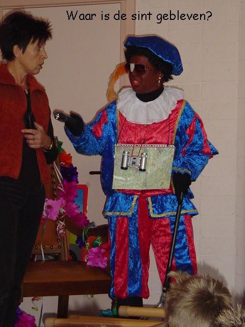 de deur gebonst, wie zou dat zijn? Het was een domme piet die de Sint kwijt