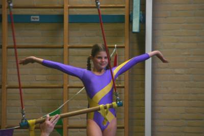 Rang Groep Voornaam AchternaamTrapeze Tipsalto Acrobatiek Bok Totaal Gem. Klaar? 2 d David Tom 82 73 85 81 32,1 8,0250 Ja 7 d Erik-Jan Boer 74 74 83 75 30,6 7,6500 Ja 4 d Evert-Floor Tom 77 72 86 78 31,3 7,8250 Ja 3 d Giovanni Verkerk 80 75 83 76 31,4 7,8500 Ja 1 d John van den Dool 78 78 83 83 32,2 8,0500 Ja 9 d Jordi de Ruijter 72 74 85 71 30,2 7,5500 Ja 8 d Kees-Jan Spek 75 70 85 73 30,3 7,5750 Ja 6 d Stijn van der Meer 82 70 83 72 30,7 7,6750 Ja 5 d Sven Kwakernaak 75 76 82 79 31,2 7,8000 Ja Gemiddeld per toestel 7,7 7,4 8,4 7,6 3,1 7,7778 Aantal deelnemers 9 Rang Groep Voornaam AchternaamTrapeze Tipsalto Acrobatiek Bok Totaal Gem. Klaar? 2 e Andrea Rijneveld 82 79 88 82 33,1 8,2750 Ja 8 e Franke van Rossum 75 75 85 78 31,3 7,8250 Ja 6 e Judith van Duin 75 78 86 78 31,7 7,9250 Ja 3 e Nathalie Verkerk 82 80 86 78 32,6 8,1500 Ja 5 e Sharon Sluys 76 78 85 81 32,0 8,0000 Ja 4 e Tamara van den Hoek 75 78 88 82 32,3 8,0750 Ja 6 e Vionna Romijn 72 77 86 82 31,7 7,9250 Ja 1 e Yvonne Schouten 77 85 88 85 33,5 8,3750 Ja Gemiddeld per toestel 7,7 7,9 8,7 8,1 3,2 8,069 Aantal deelnemers 8 Totaal groepen d & e 17