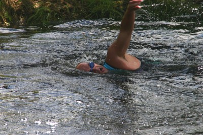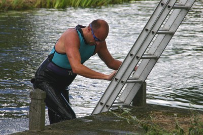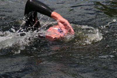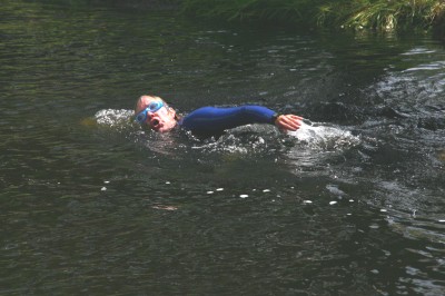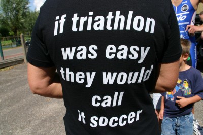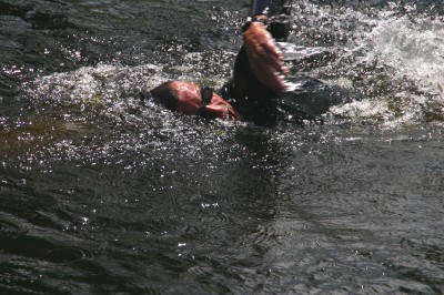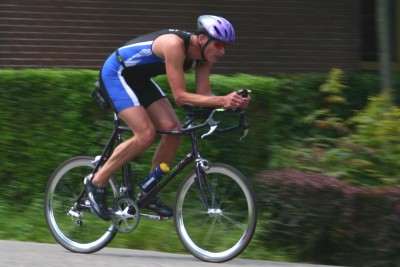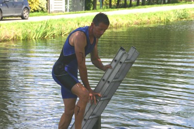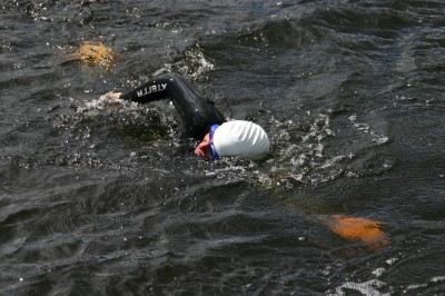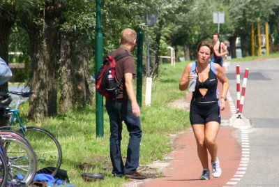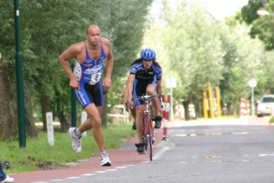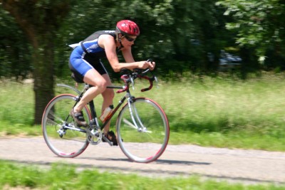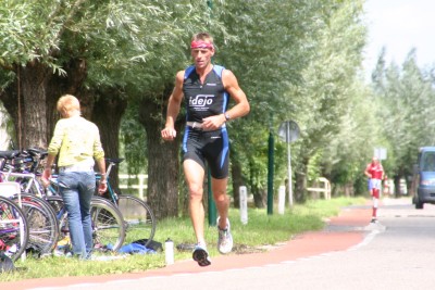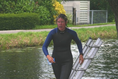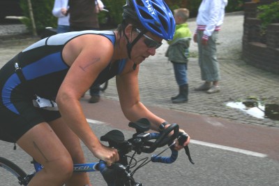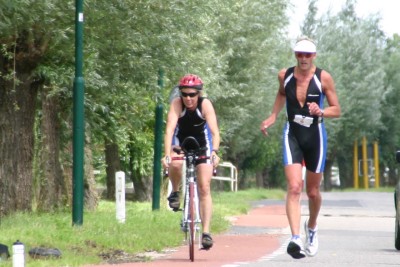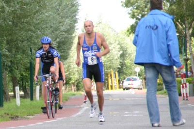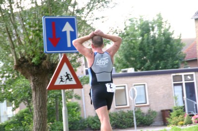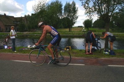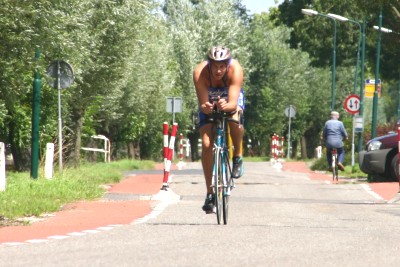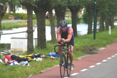 Op het programma eerst het zwemmen van 430 meter (met de wind in), daarna 24,4 km fietsen en als afsluiting 5,2 km hardlopen. (4 rondjes van 1300m)